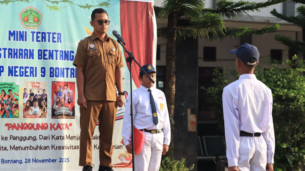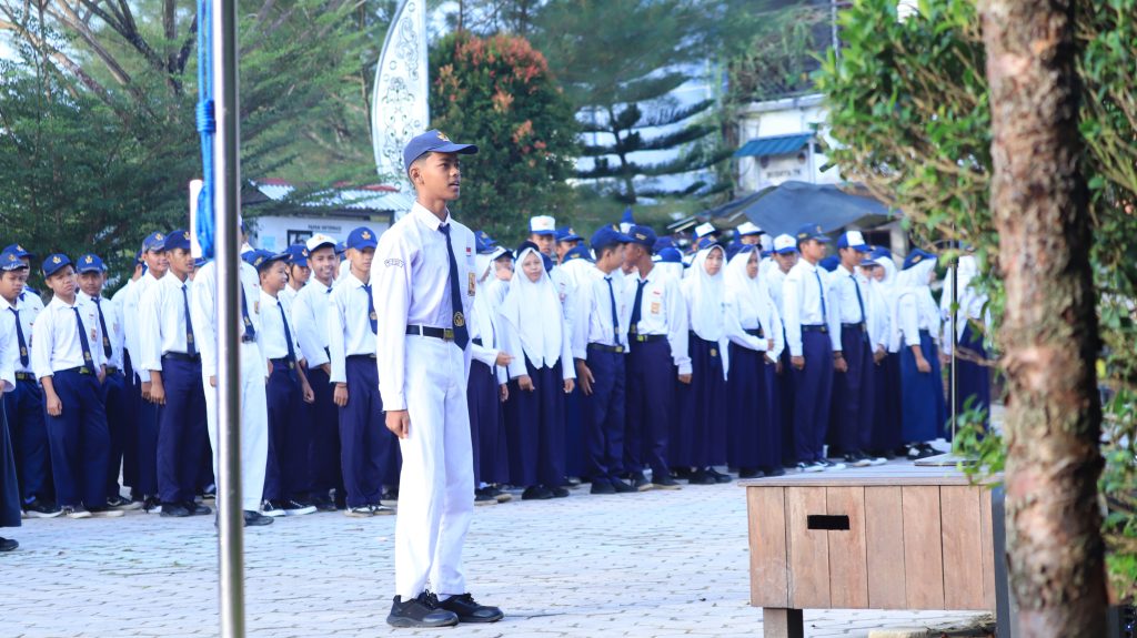 BONTANG – Suasana khidmat menyelimuti lapangan SMP Negeri 9 Bontang pada Senin pagi. Upacara bendera rutin yang diikuti oleh seluruh siswa, guru, dan staf sekolah kali ini dilaksanakan dengan penuh disiplin oleh petugas upacara dari kelas 8C di bawah bimbingan wali kelas, Bapak Agus Priyanto.