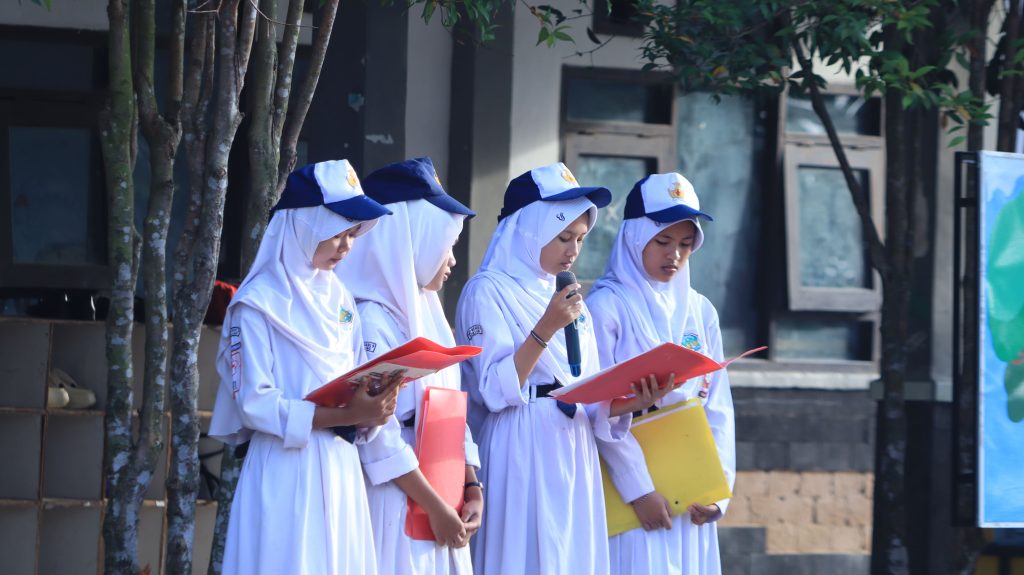 yaitu Citra, Dewi, Dan Syifa. Upacara di pandu oleh Aini sebagai MC, diikuti pembacaan UUD 1945