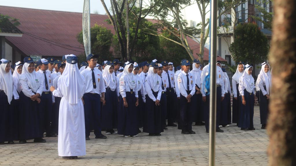 BONTANG -Suasana khidmad menyelimuti lapangan SMP Negeri 9 Bontang pada Senin Pagi.